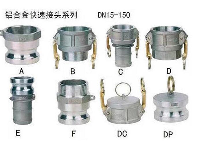 扳把式快速接頭按型號分為:KJT-A型B型C型D型E型F型DC型DP型及非標型9個型號,其中有A型、E型、F型、DP型4個公頭和B型、C型、D型、DC型4個母頭。